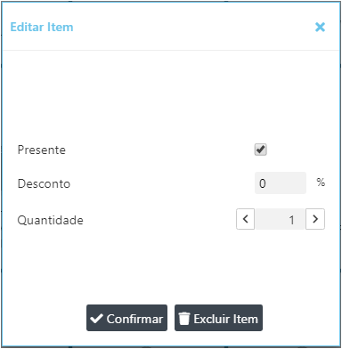 Vamos fazer uma venda com três produtos, na qual dois deles serão para presente. Com base nas configurações feitas acima, o usuário deverá assinalar os itens que serão presentes, para que o sistema imprima um cupom separado para cada um. Então, clique no ícone de edição do item e marque o flag Presente e confirme para gravar a edição.