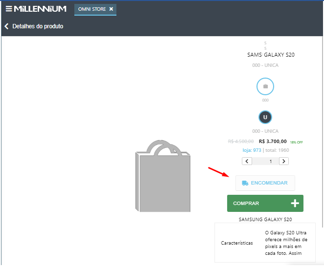 Após selecionar o produto da venda, clique no botão Encomendar e na sequência, clique em Comprar. | |