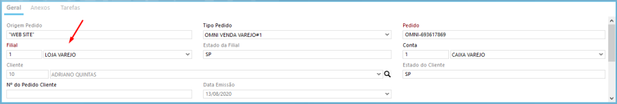 No Millennium, em Vendas, faça uma consulta em Pedidos de Venda e perceba que o pedido emitido na loja para o cliente foi incluído. Acesse o pedido de venda e verifique que a filial consta como LOJA.