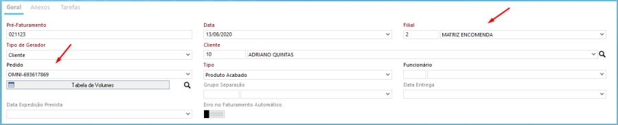 Também foi gerado um pré-faturamento, que deverá ser conferido, para ser posteriormente faturado. Vamos consultar o pré-faturamento do pedido desse cliente e verificar que ele foi gerado para a Matriz, porque ela será responsável pela emissão da nota fiscal e envio da mercadoria para o consumidor final.