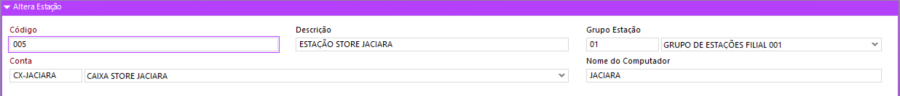 No menu principal, em Store Manager\Administrador\Cadastros, selecione Estações e acesse o link de inclusão. Preencha os campos: