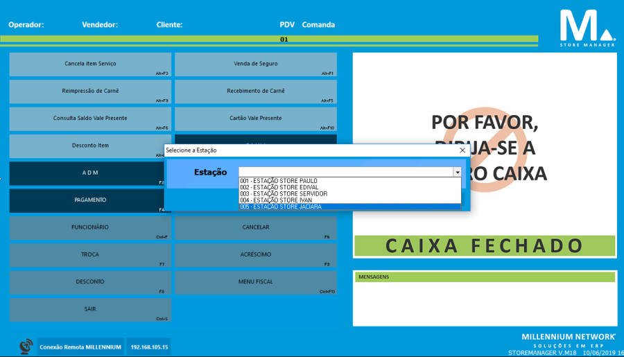Sempre que uma nova estação for criada, ao entrar no Store Manager, será necessário selecionar a conta exclusiva da estação.