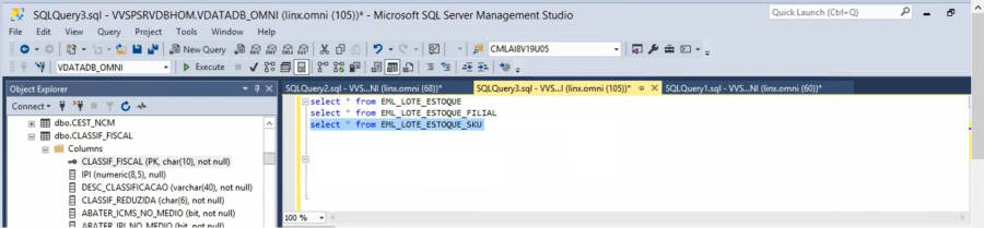 Tabelas preenchidas do lado do Linx ERP durante a integração dos saldos de estoque