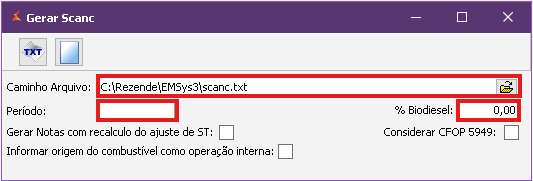 Para gerar o arquivo, acesse: EMSysFiscal → Arquivos Fiscais → SCANC.