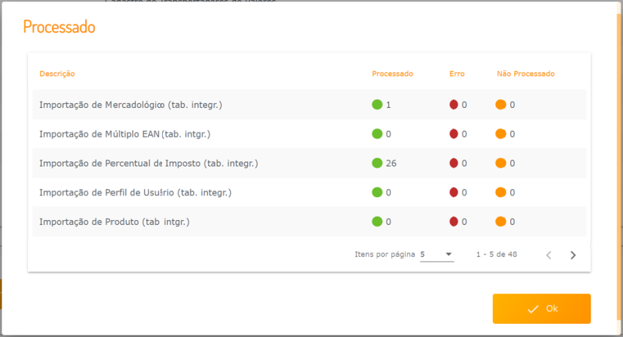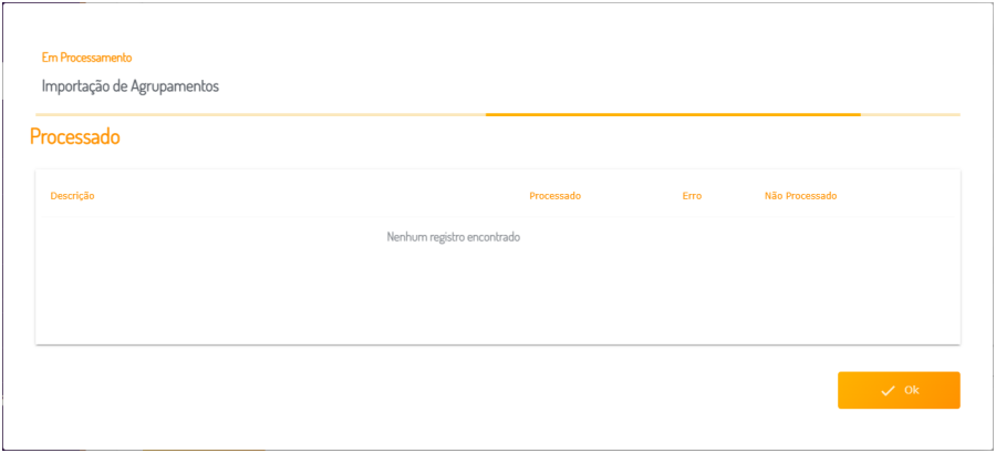 Ao finalizar o processamento, será exibido o resultado das importações realizadas.