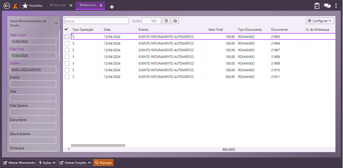 Com a venda feita, após 3 minutos estará disponível para importação no e-Millennium, antes de importar é necessário verificar a conta caixa que está sendo utilizada está aberta para a data atual.