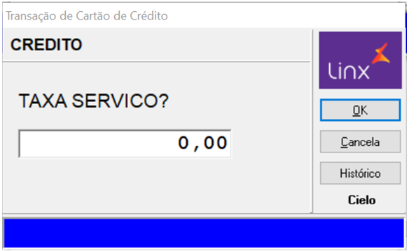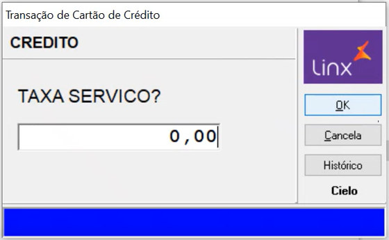 Informe a taxa de serviço, quando houver, e tecle OK. | |
