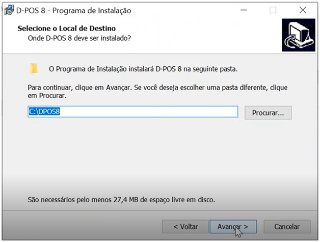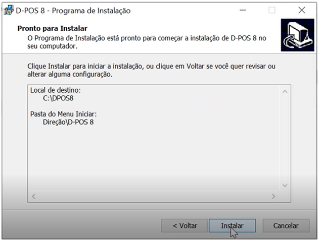 Cria uma pasta em c:\DPOS8