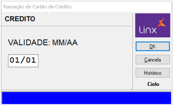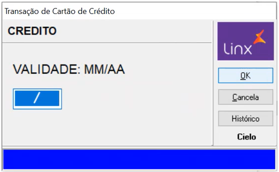 Se for um cartão de homologação, preencha com mês e ano qualquer e clique em OK. | |