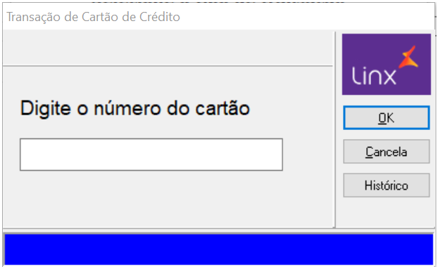 Se a conexão estiver ok, será aberta uma tela para digitação ou leitura do número do cartão. | |