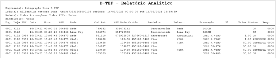 Para visualizar as transações realizadas com o TEF Linx – Direção, acesse o site, informando o nome da empresa e a senha, para ter acesso ao relatório das vendas realizadas.