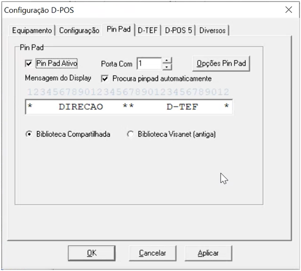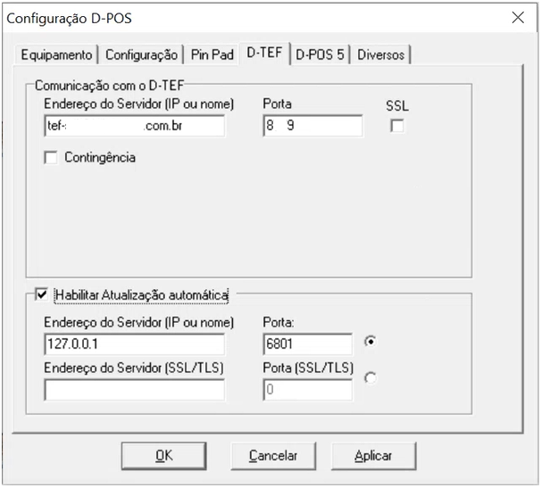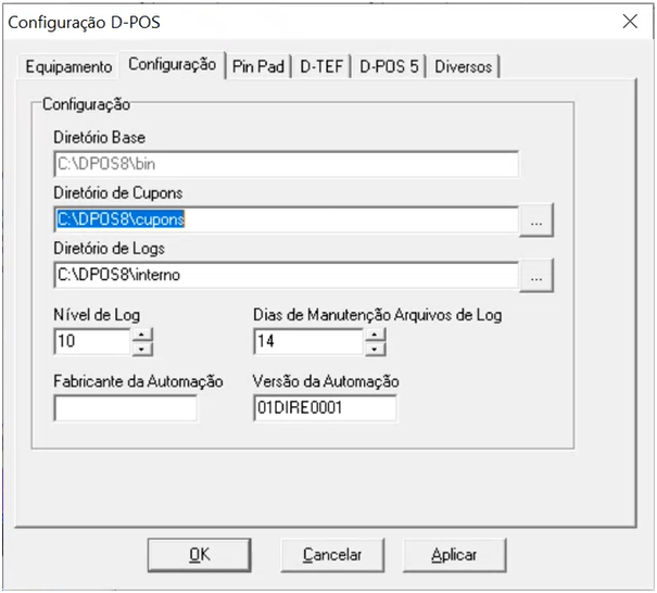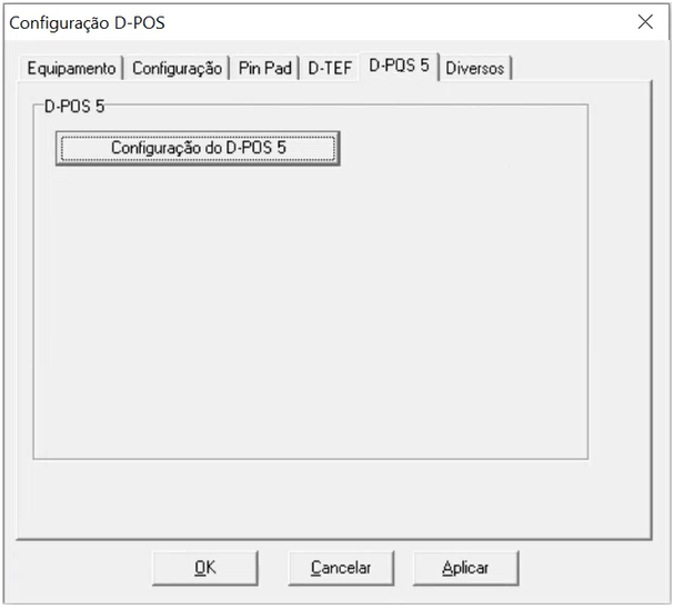 Na guia D-POS 5, são feitas as configurações do POS da versão 5. Se este não é o seu caso, nada deve ser feito nessa guia. | |
