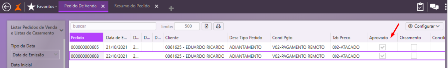 Vamos consultar novamente o e-Millennium e verificar as atualizações realizadas nos dados do pedido de venda após o cliente ter lançado as informações para pagamento no Pagar.me.