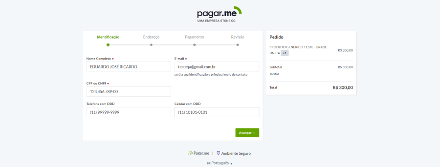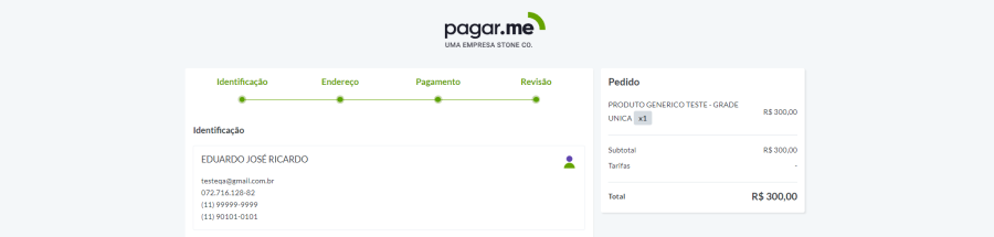Quando acionado, na tela da plataforma Pagar.me, os campos com os dados do consumidor ficarão disponíveis para que ele realize alterações nas informações de seu cadastro.