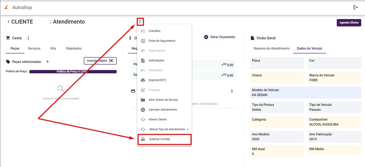 O processo de Solicitar corrida no LinxAutoshop é um programa disponibilizado para os clientes Autoshop.