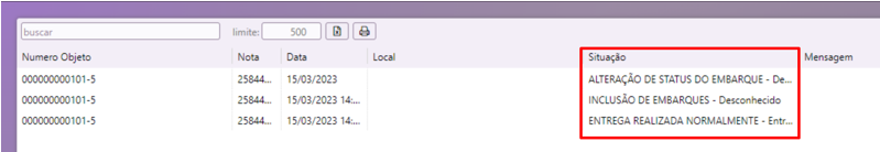 A visualização correta das ocorrências aparecerá na coluna “Situação”.