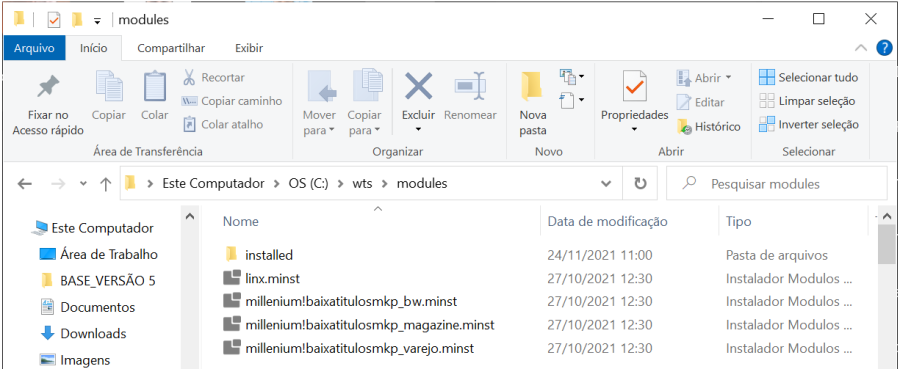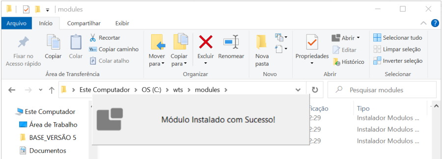 Em C:\wts\modules, localize e selecione o módulo a ser instalado, a seguir tecle Enter para executar o programa de instalação.