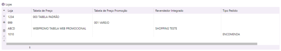Lojas (tabela) – Usado para definir preços diferenciados por loja. Por razões de regra de negócios, a empresa poderá decidir que irá praticar preços diferentes para as diversas lojas em que irão vender seus produtos.