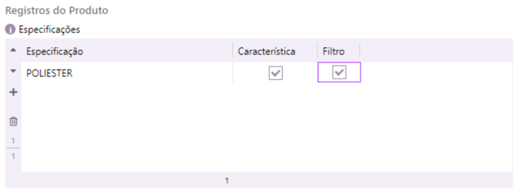 - Filtro – Quando marcado, cria no site um filtro que fará a busca do produto pela característica. Por exemplo: o consumidor poderá buscar no site por lençol e poderá refinar sua busca selecionando apenas lençóis de poliéster, marcando este detalhe no filtro exibido na tela.