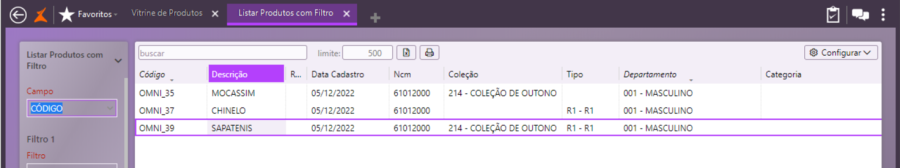 Observe os três produtos abaixo, que foram cadastrados com as características da regra configurada.