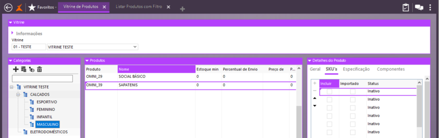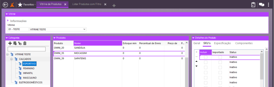 Atenção! Os produtos devem ser inseridos na Vitrine com o campo Incluir já marcado.