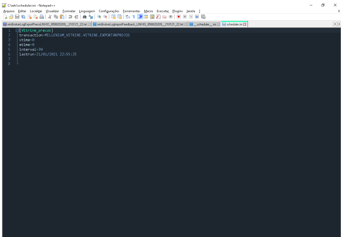 -É possível definir o intervalo de sincronização de estoque com o Linx IO através do \wts\Scheduler.ini