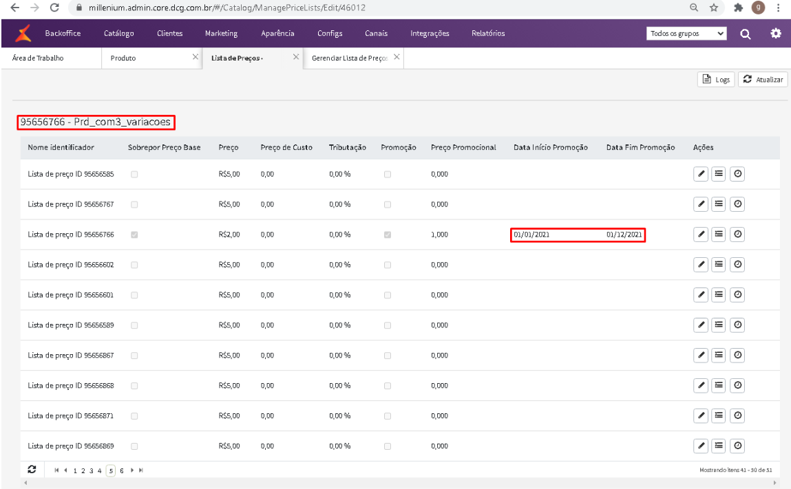 -Nesta tela teremos a projeção da lista de preço, incluindo preço promocional e sincronização de preço.