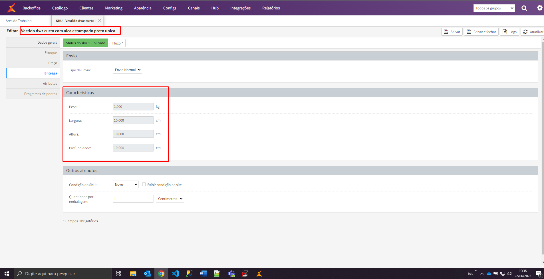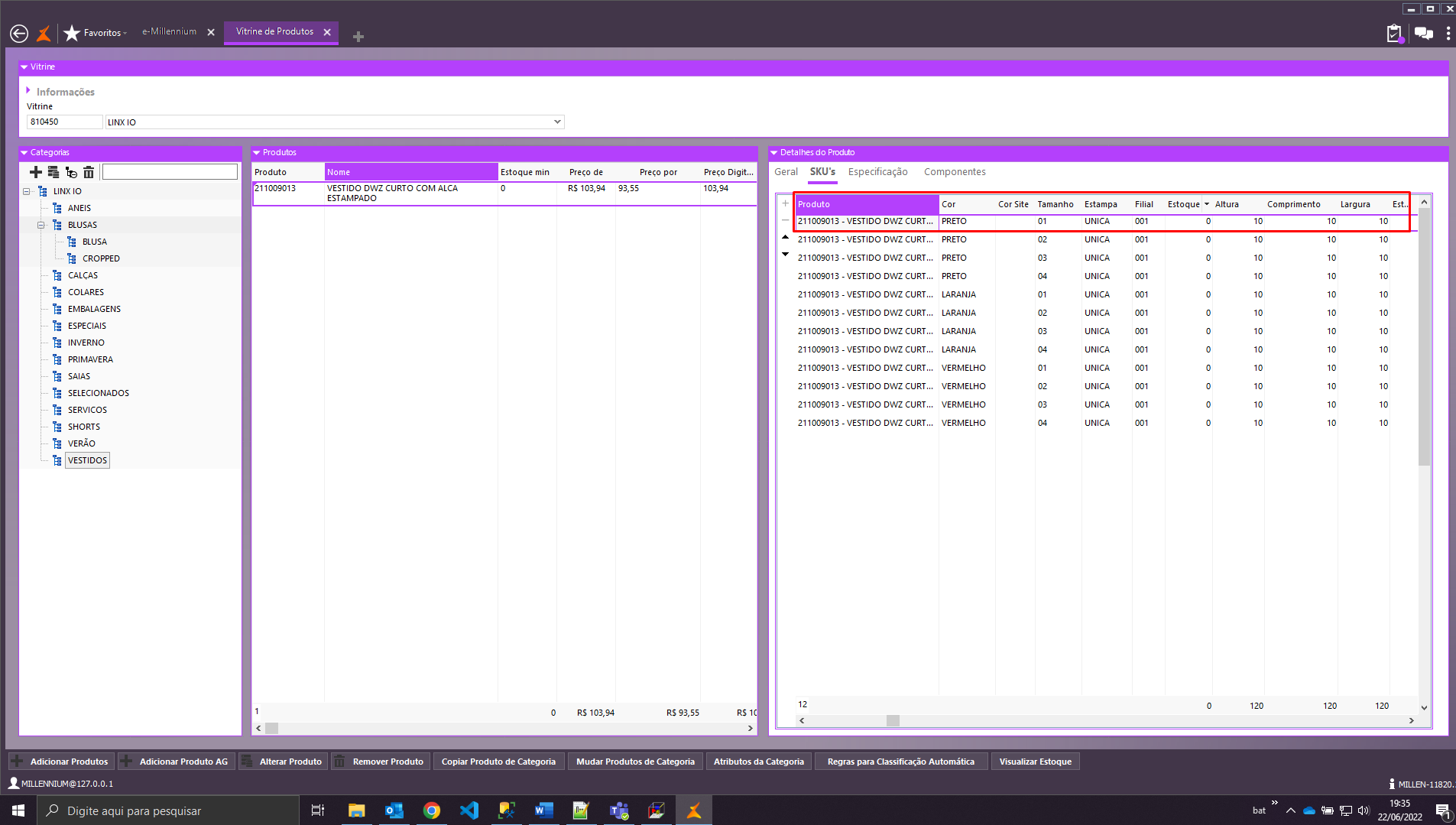 - Valor: Digitar código do produto incluso na vitrine \ Procurar \ Alterar Produto Acabado