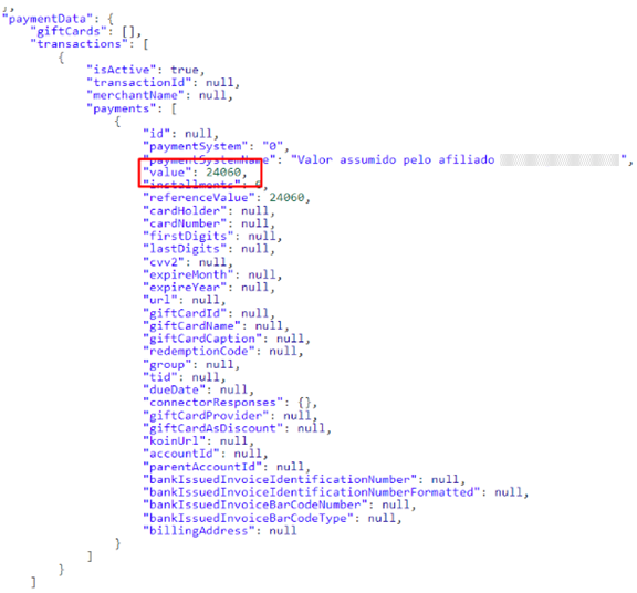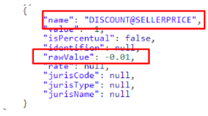 Foi identificado que este centavo de desconto está discriminado no JSON conforme a imagem abaixo: