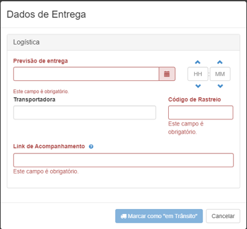Assim, acesse o caminho "Menu/Produtos e Serviços/Vitrine/Vitrines", selecione a Vitrine que está relacionada ao Pedido de Venda e acesse a aba "Configurações do Pedido", lá será encontrado o parâmetro "Processa Embarque", com ele habilitado, a integração passará a informar os campos necessários que faltaram no exemplo acima.