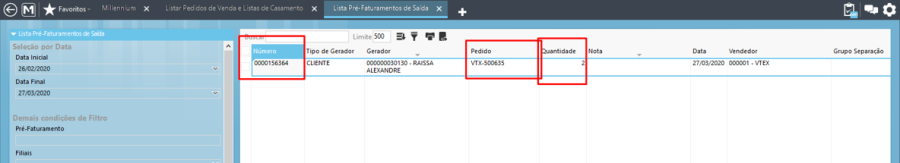 Logo após, inicie novamente o sistema e observe que o sistema gerou um único "Pré-Faturamento", com as 2 peças.