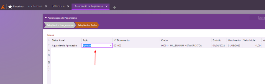 O Título utilizado como exemplo na descrição do problema, se encontrava com status "Aguardando Aprovação" e por isso não era possível incluí-lo no Borderô PagFor.