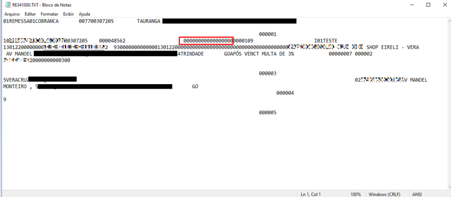 Ao gerar novamente o arquivo de remessa, o sistema gera com a informação corretamente.