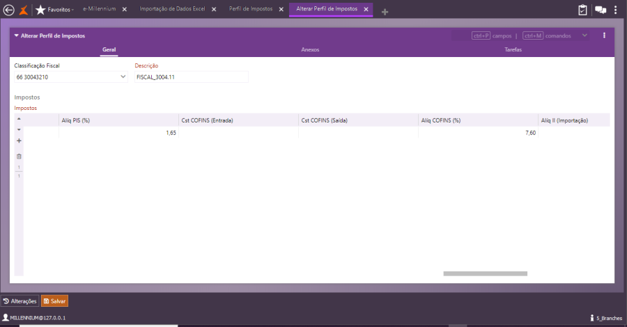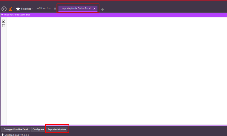 Em Menu /Controladoria /Fiscal /Cadastros /Integrações /Importador Excel, carregar planilha, selecione a planilha.