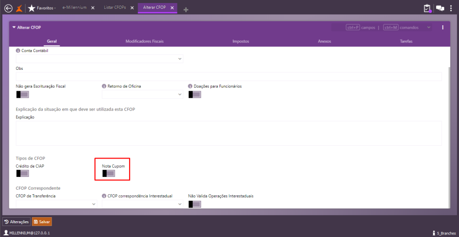 Ao emitir uma Nota Fiscal com o CFOP 5.929 e buscar os valores nos relatórios, estes saíram zerados, conforme abaixo: