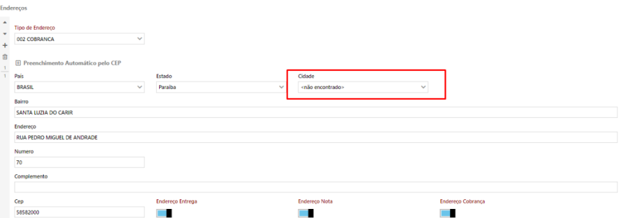 Acesse o Menu / Vendas / Cadastro / Integrações / Clientes / Alterar Cliente. Insira a cidade do cliente no campo "Cidade" no contato do cadastro do cliente.