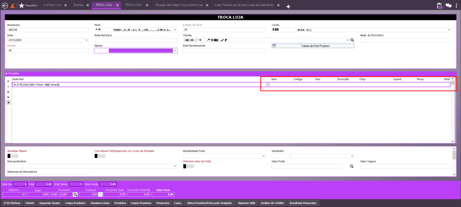 Ao desabilitar esse parâmetro, o sistema retorna os itens ao selecionar a nota de referência.