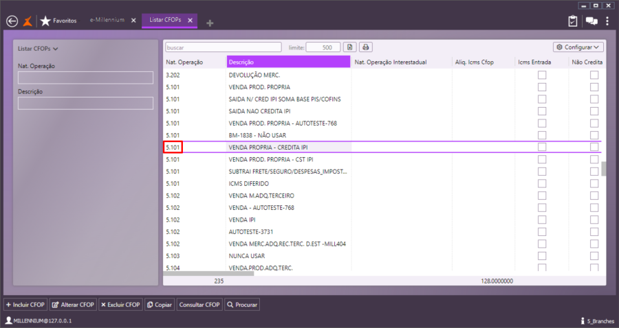 Para verificar o motivo desta situação, é necessário analisar o CFOP ocorre esta divergência. Como no exemplo acima, o CFOP é o 5.101 , com isto, vamos para as configurações deste CFOP, acesse o caminho "Menu / Controladoria / Fiscal / Cadastros / CFOP".