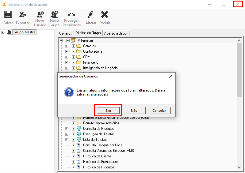 Acesse o Gerenciador de Usuários, não é necessário alterar nenhuma configuração, em seguida salve. Esse procedimento é necessário para atualizar os recursos novos que foram desenvolvidos.