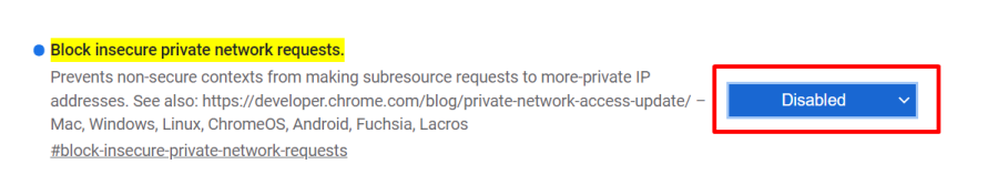 Para desativar este recurso, basta desabilitar a flag block-insecure-private-network-requests.