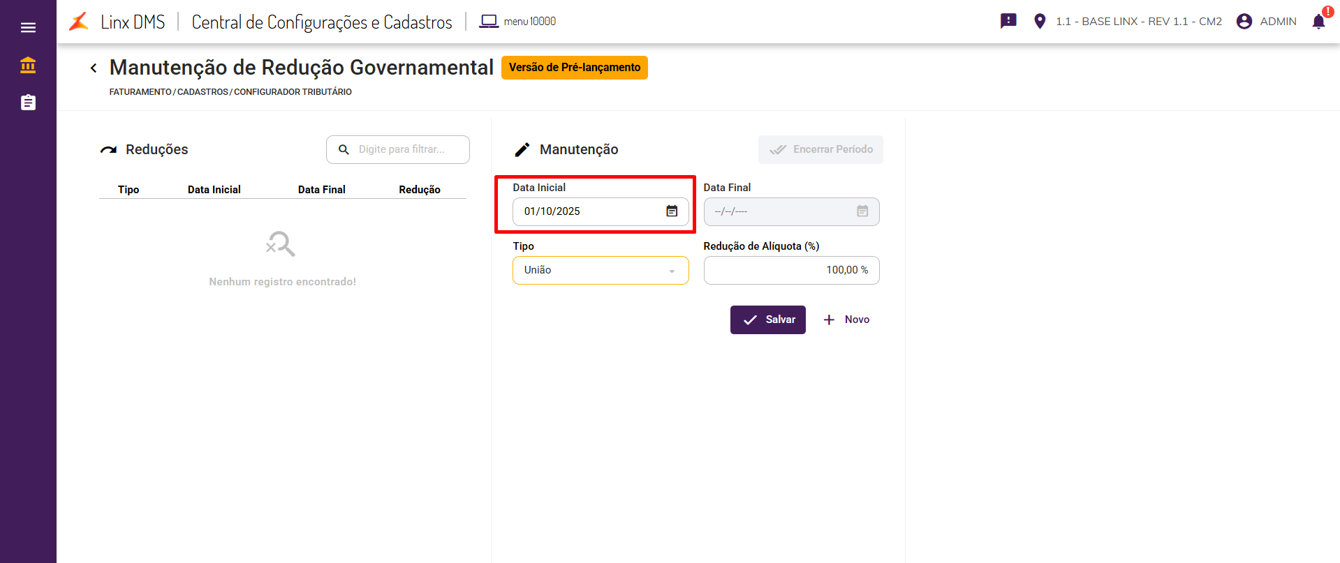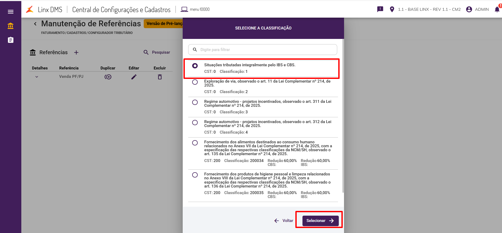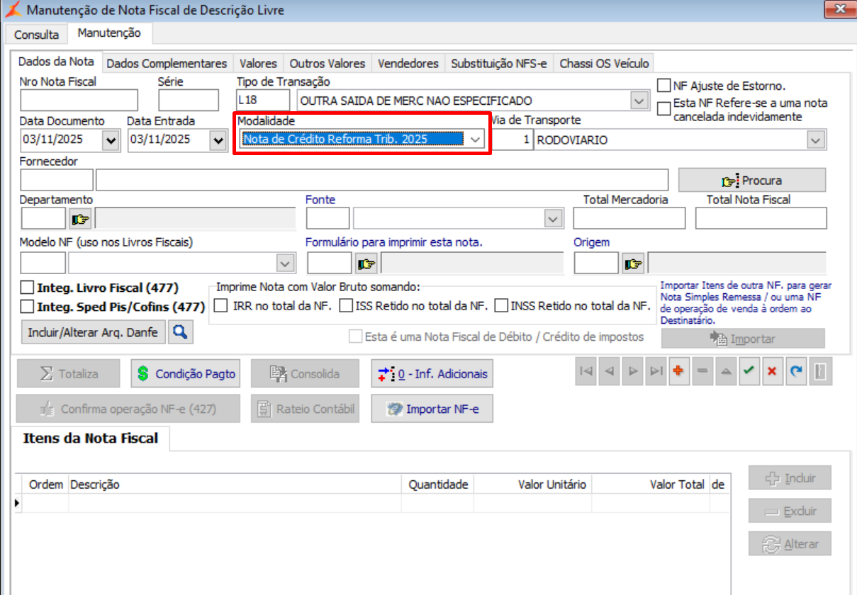 4. Selecione a modalidade "Nota de Crédito Reforma Trib. 2025".