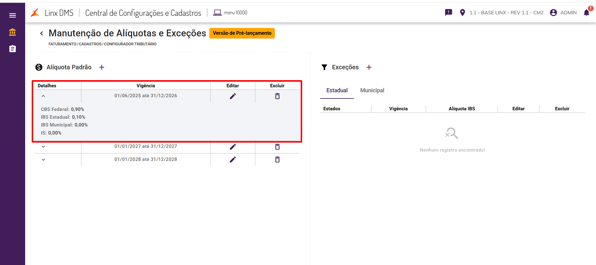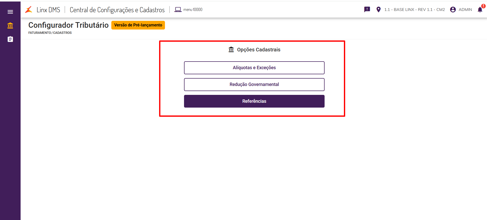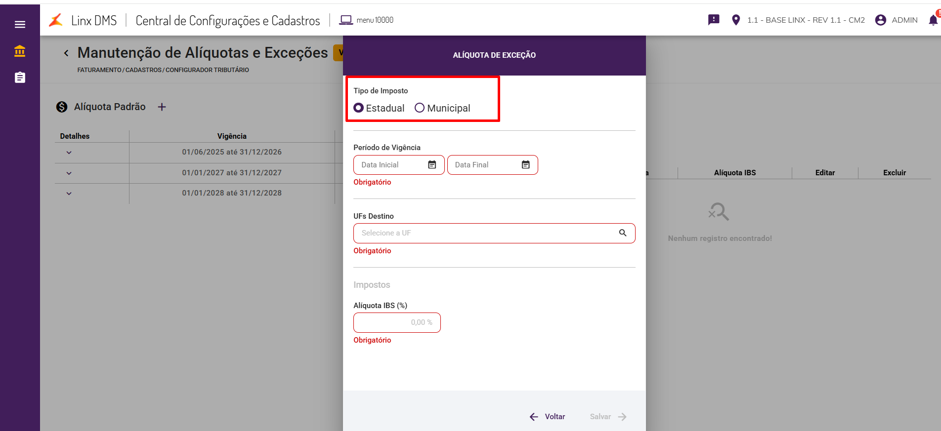 A tela do Configurador Tributário foi implementada para facilitar a configuração e o gerenciamento de regras do sistema, permitindo que os usuários realizem ajustes de forma intuitiva, segura e padronizada, garantindo a integridade das informações.