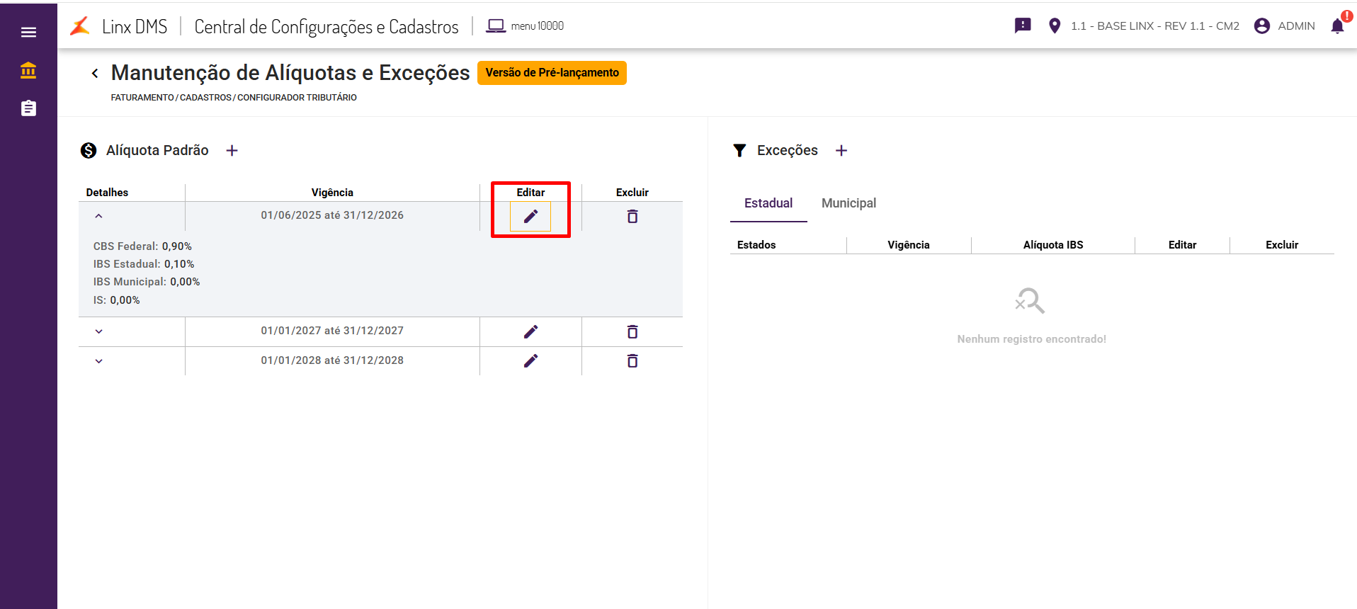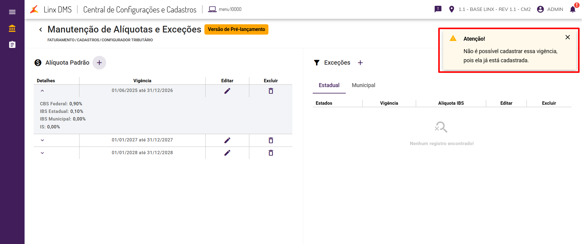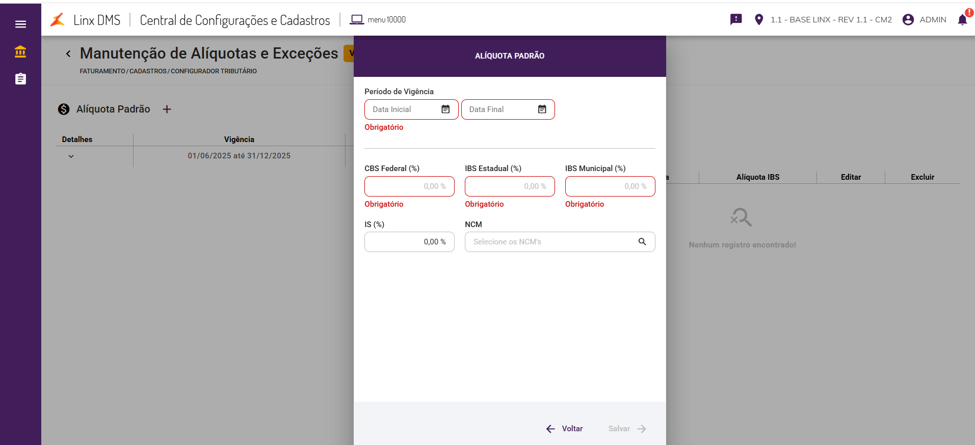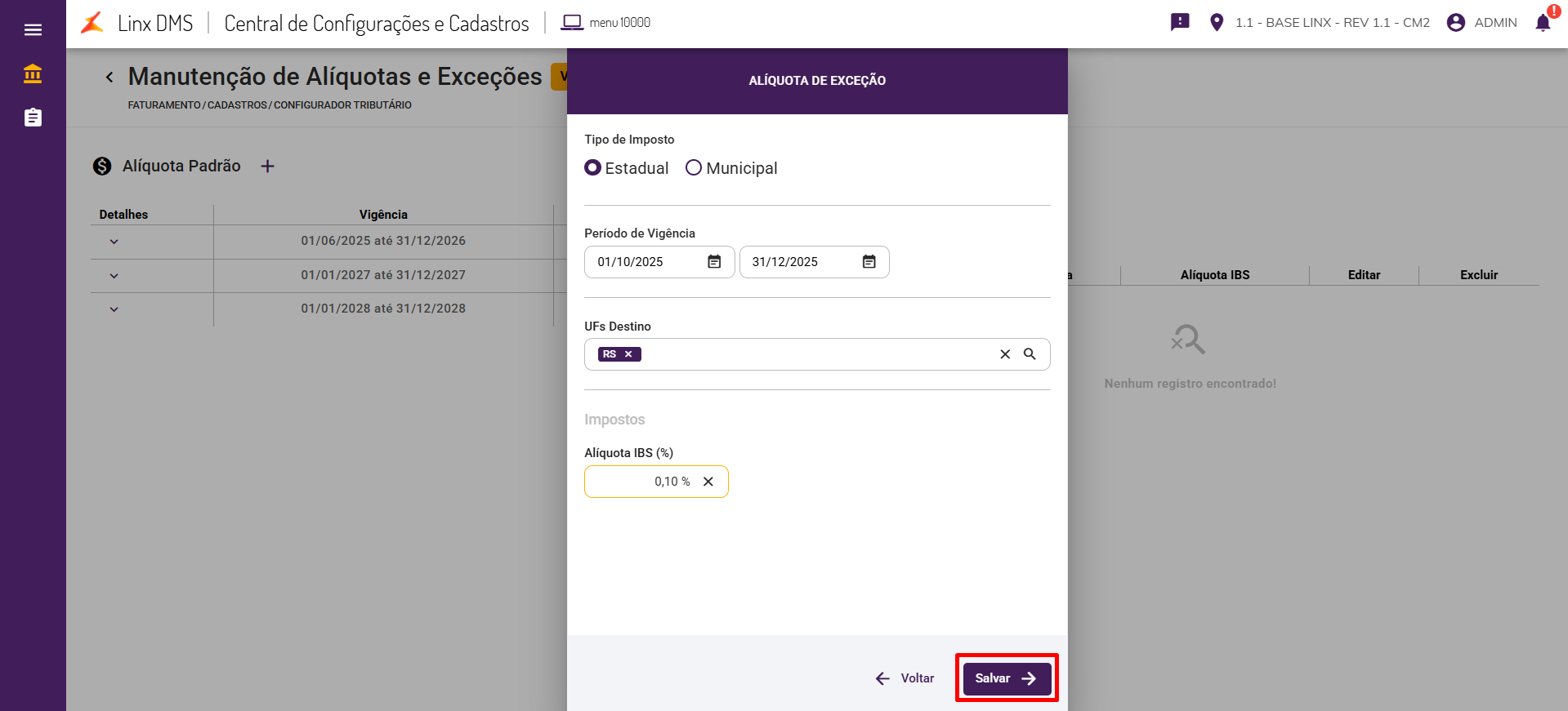 A tela do Configurador Tributário foi implementada para facilitar a configuração e o gerenciamento de regras do sistema, permitindo que os usuários realizem ajustes de forma intuitiva, segura e padronizada, garantindo a integridade das informações.