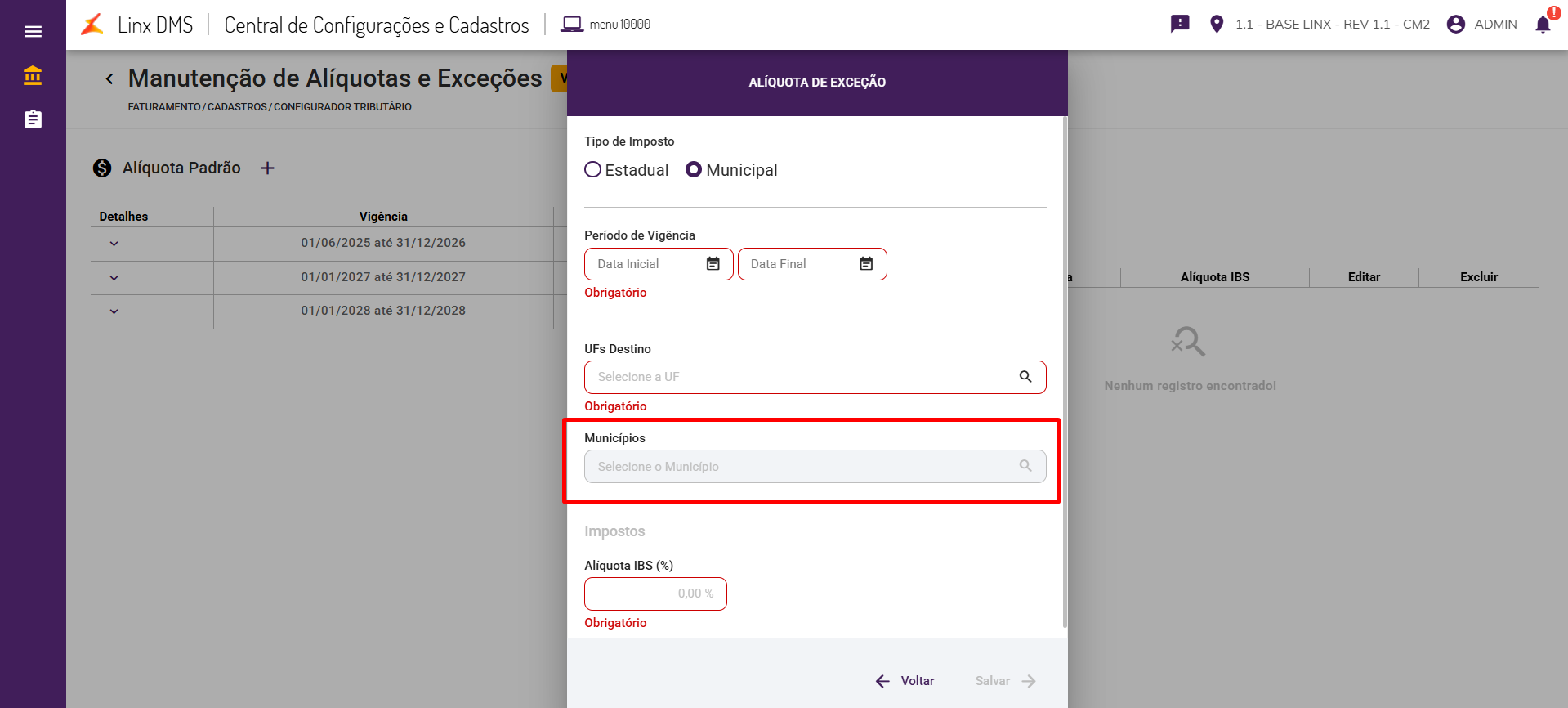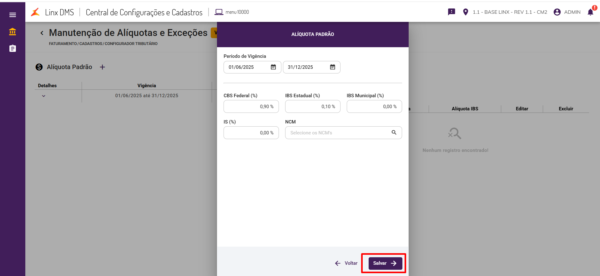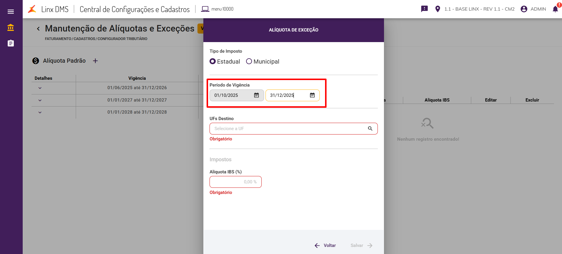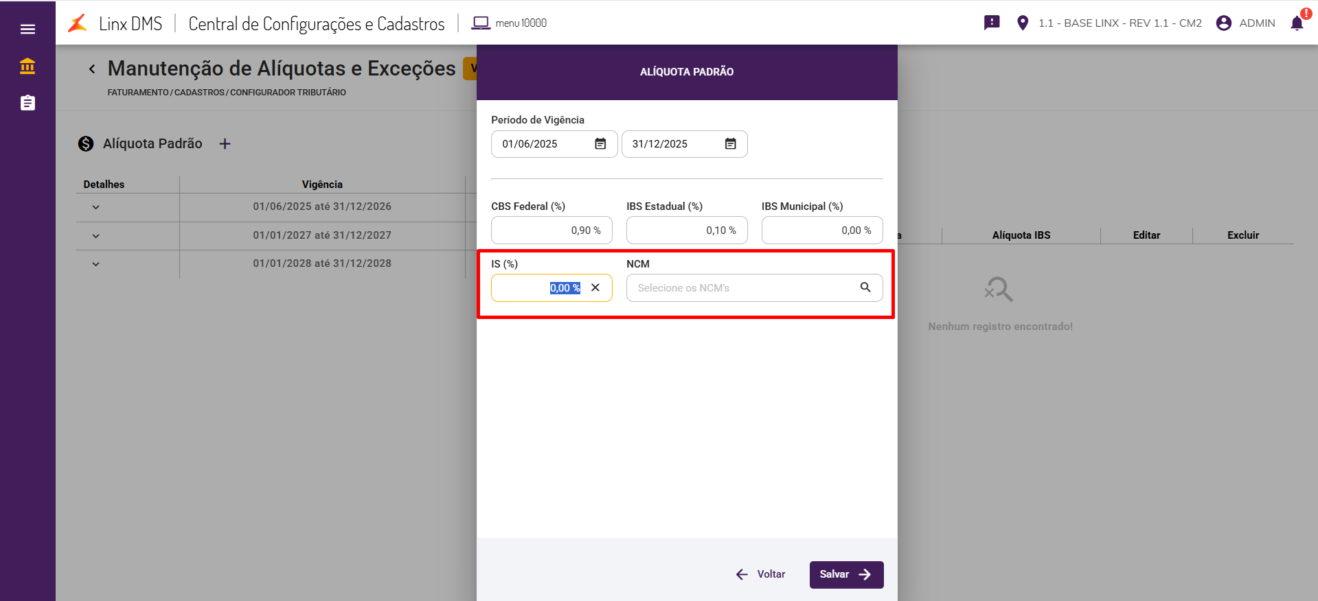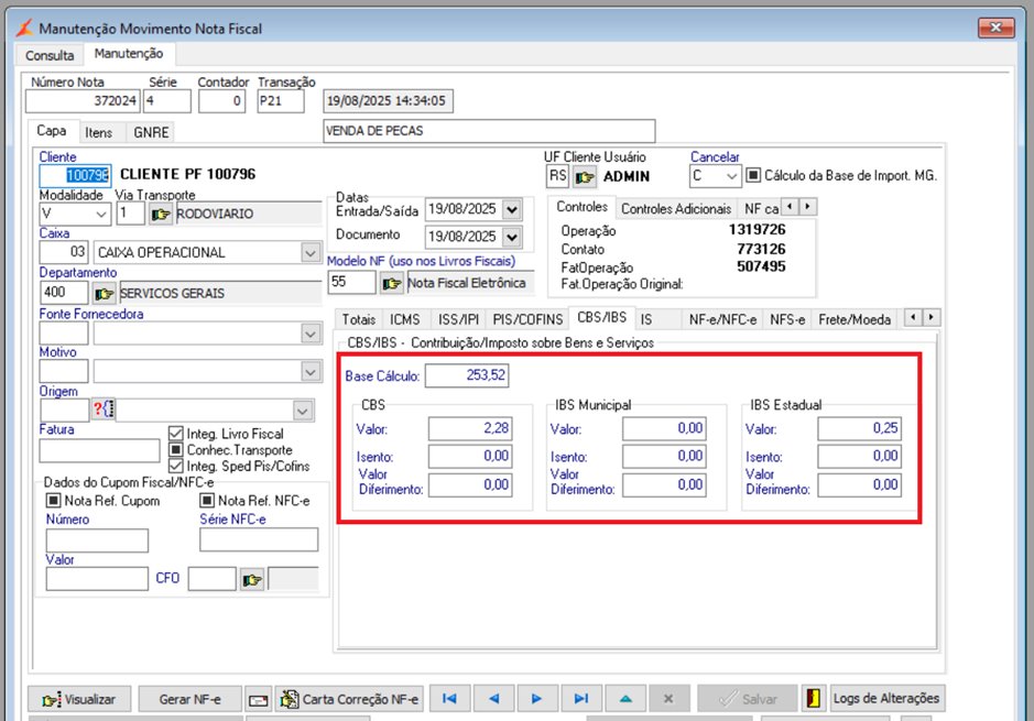 Lembrando que, o preenchimentos dos campos relativos ao IBS/CBS será realizado conforme regras de parametrização do Configurador Tributário.