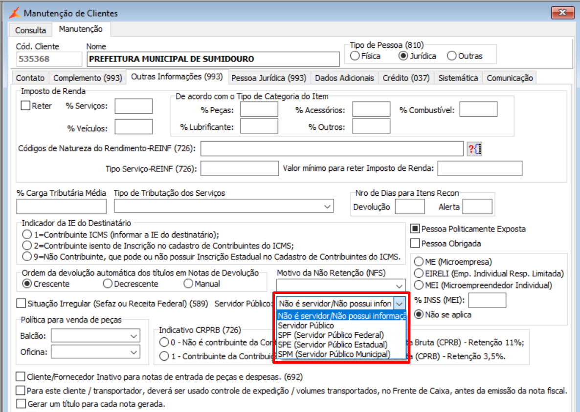 5. Acesse a aba Dados Complementares e selecione o código permitido de "Tipo de Nota" para modalidade "Nota de Crédito Reforma Trib. 2025".