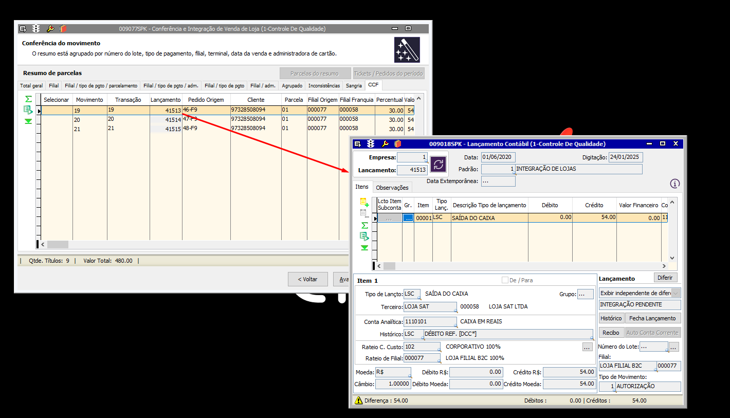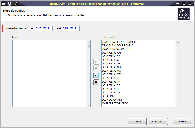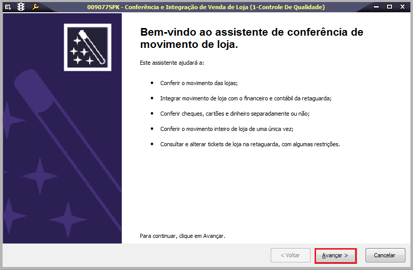Siga estes procedimentos para integrar as movimentações da loja a partir da tela 009077: