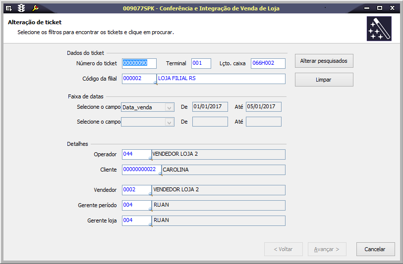 A opção Alteração de tickets de lojas específicos permite, como o nome diz, alterar um ticket específico..