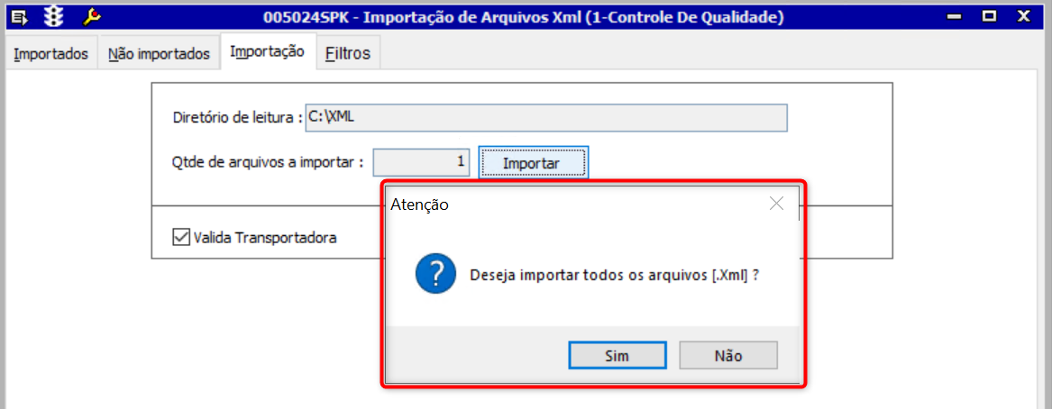 Importar XML validando transportadora | Importar XML Não validando transportadora |