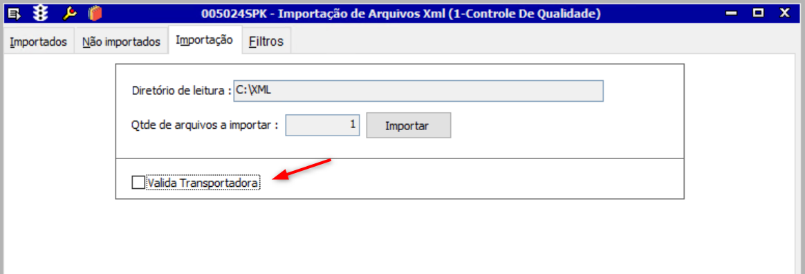 Incluída opção para que a tela "005024 - Importação de Arquivos Xml" não valide a transportadora na entrada do XML.