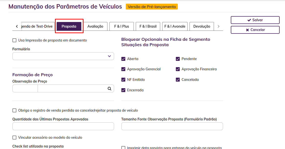 Na aplicação Veículos > Consultas/Relatórios > Consulta Proposta